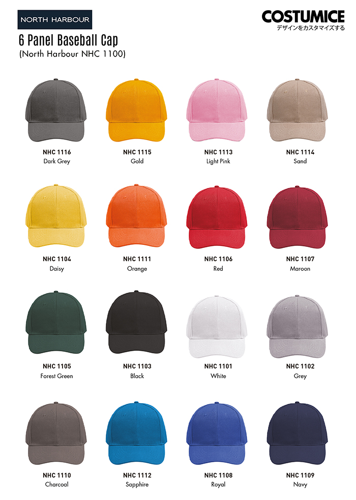 Looking for high quality and affordable custom baseball caps? Be sure to try out our North Harbour NHC1100 6 Panel Baseball Cap.